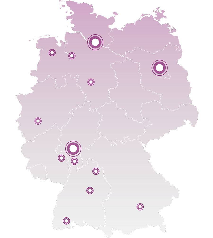 Mehr als 100 Mitarbeiter an unseren Standorten in Frankfurt, Hamburg und Berlin sowie bundesweit im Einsatz.